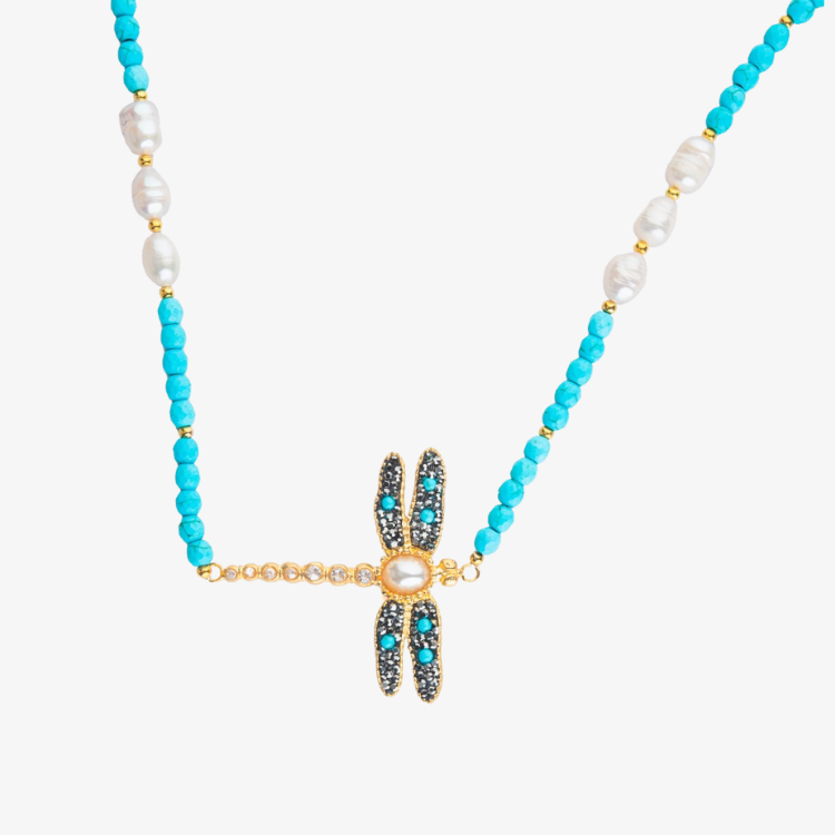 Material – 925 Sterling Silver, Cultured Baroque Pearls, Swarovski Crystals & Semiprecious Turquoise