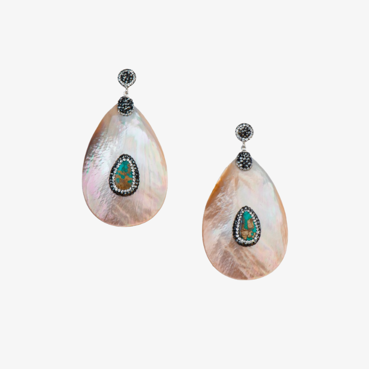 Material – 925 Sterling Silver, Mother of Pearl, Swarovski Crystals & Semiprecious Turquoise